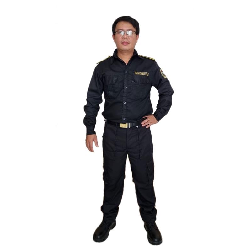 - Áo vệ sĩ dài tay màu đen được may bằng vải kaki 65/35, được kết tinh từ hai chất liệu là sợi cotton và sợi polyester.