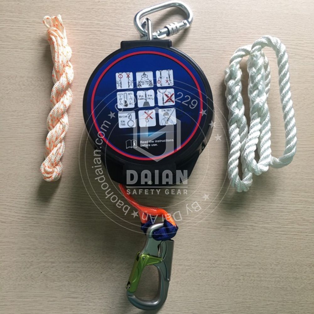 - Dây có thể tự động co lại vào trong hộp khi không có điểm neo.