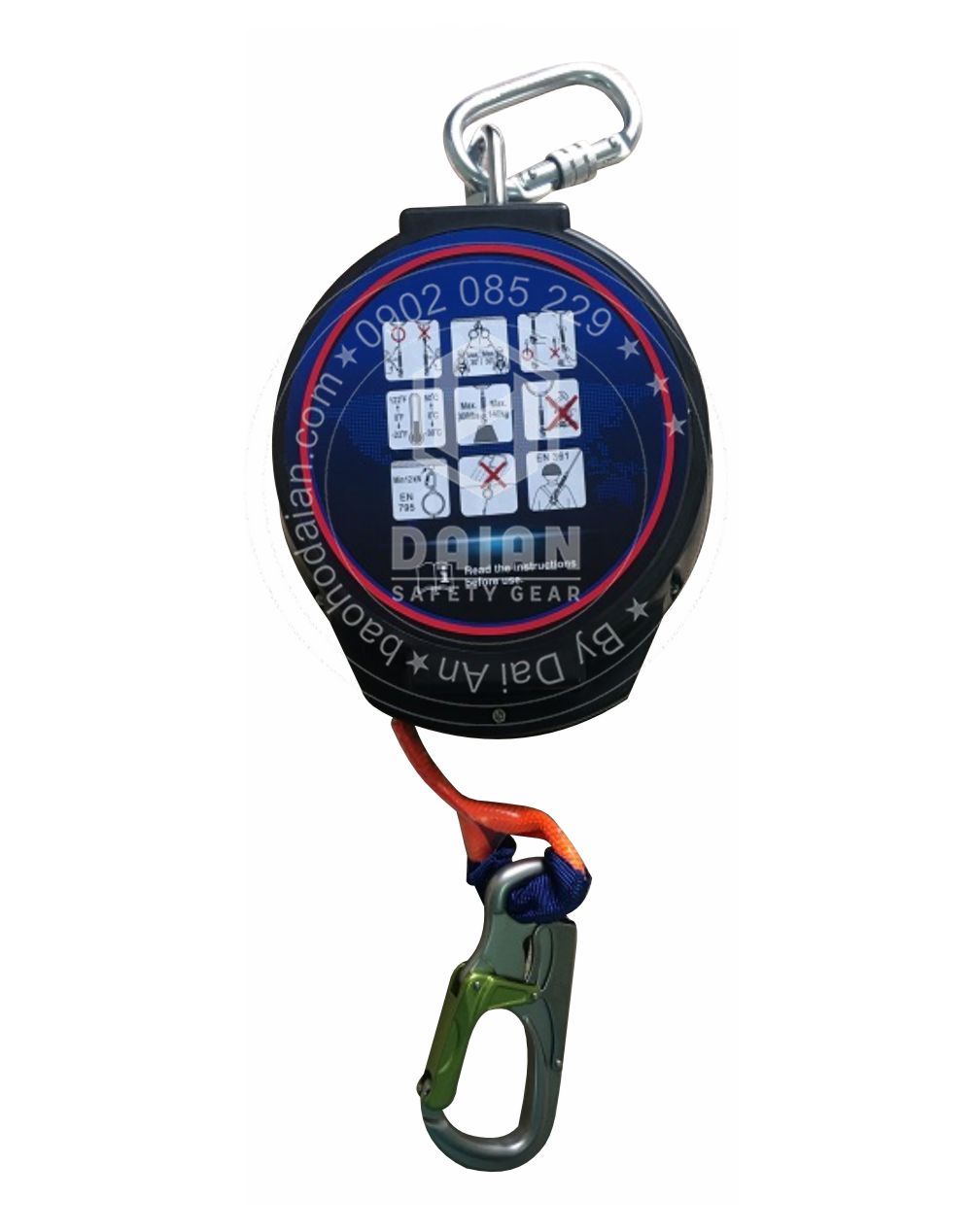 + Móc liên kết bằng thép mạ, chịu tải 15kN để kết nối với móc chữ D của dây nịt toàn thân .