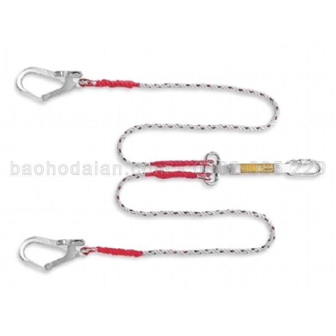 - Dây được làm từ nguyên liệu sợi Polyamide, các móc khoá được làm từ kim loại thép không gỉ. Dây chịu được lực tĩnh là 22 kN và lực động là 6 kN.