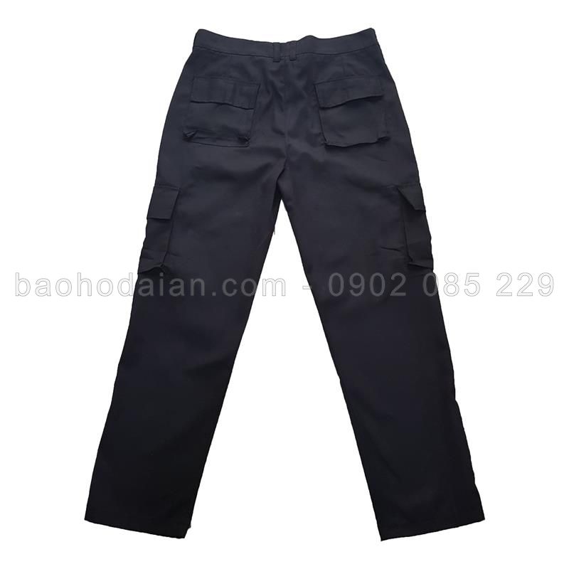 - Quần bảo vệ: vải kaki 65/35 túi hộp màu xanh đen