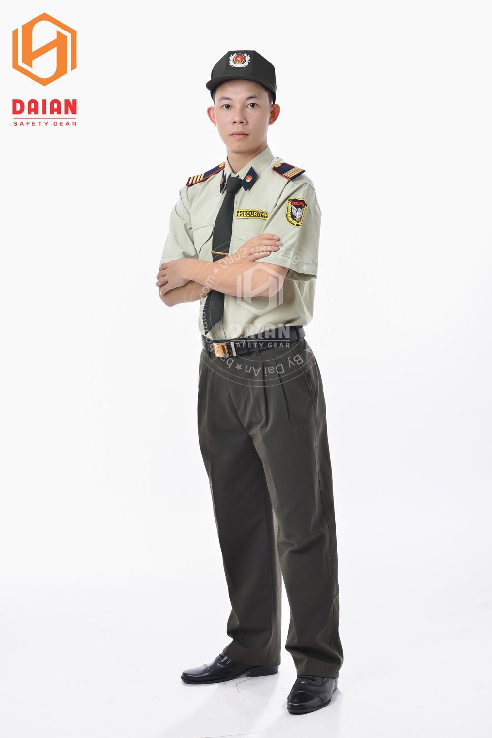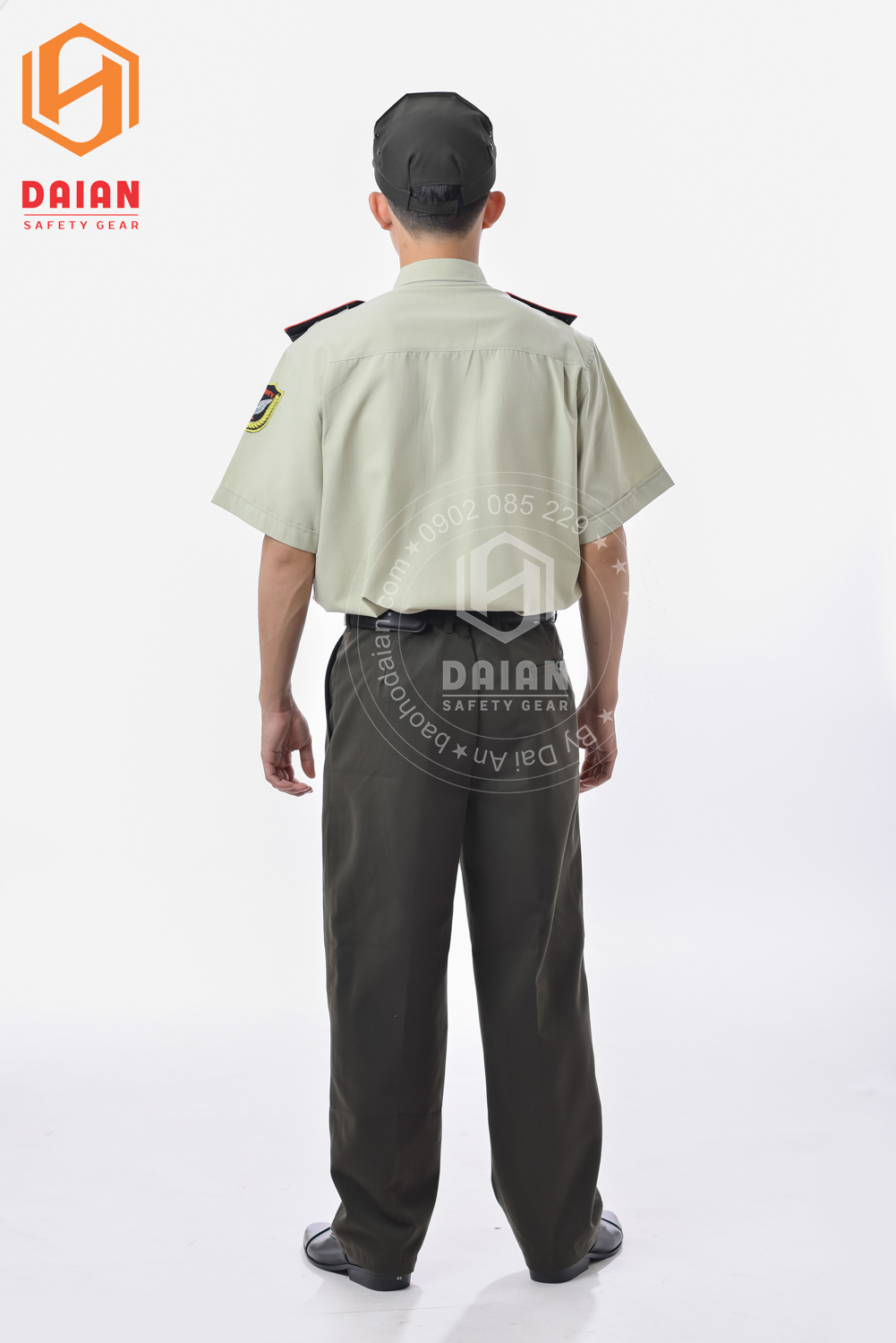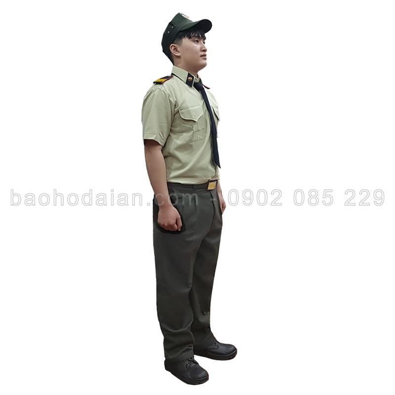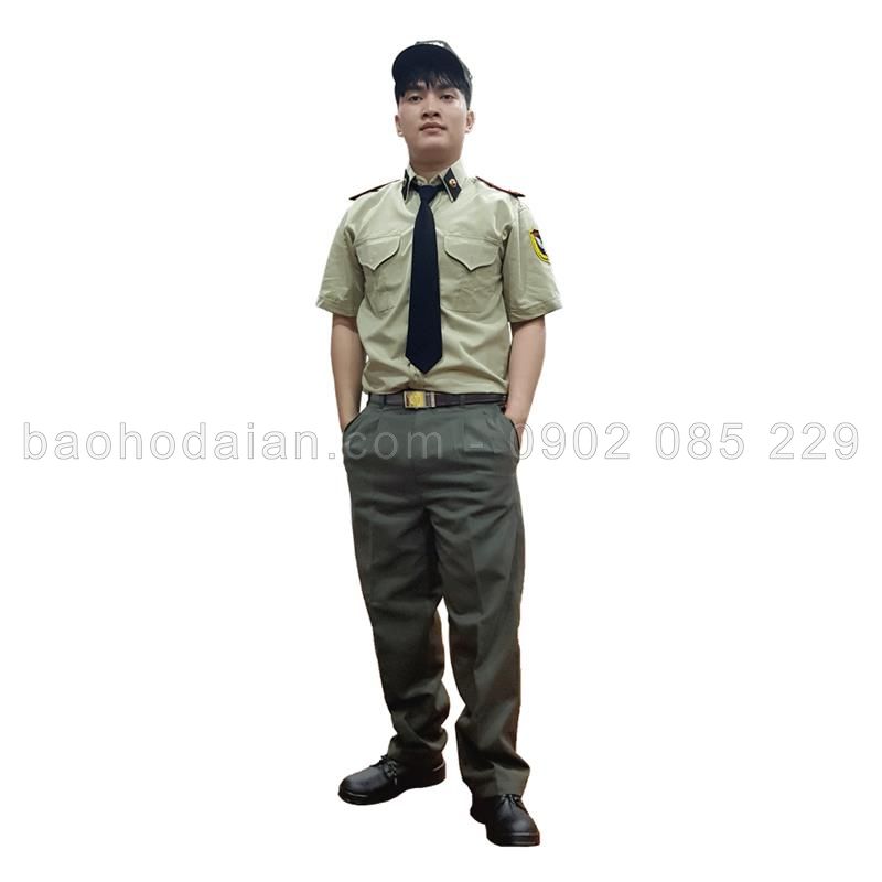 - Quần bảo vệ: vải kaki thành công màu xanh rêu