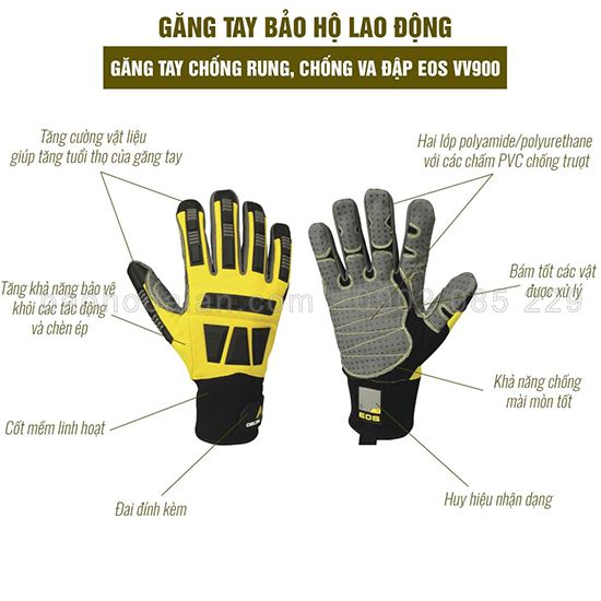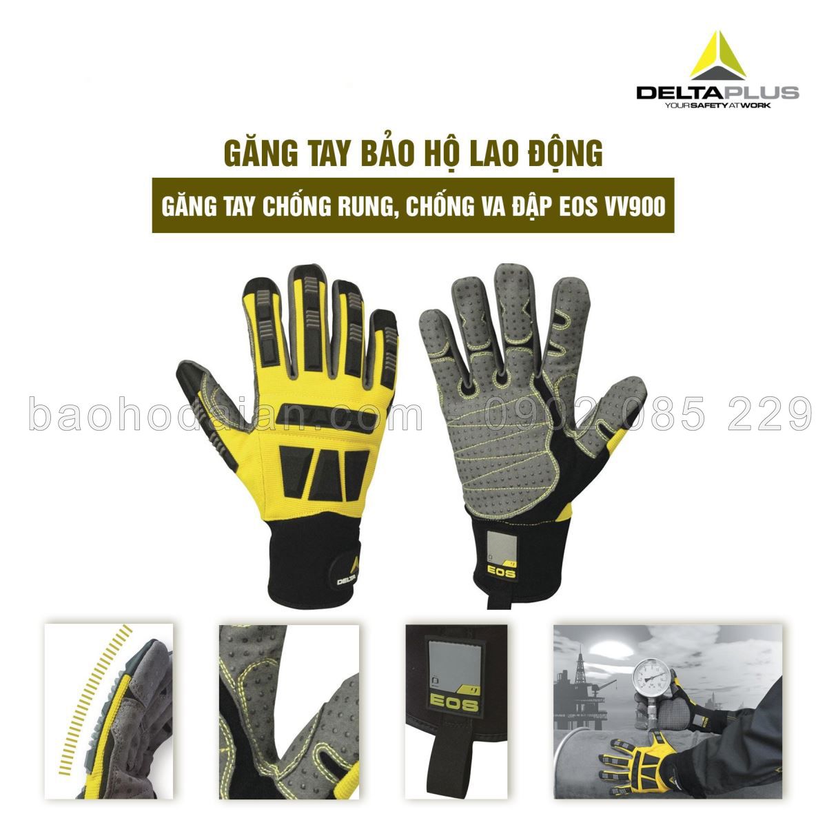 - Găng tay deltaplus EOS VV900 đảm bảo sự an toàn và bảo vệ tối đa cho người sử dụng, các công việc mà cần sử dụng găng tay chống rung và va đập thường xuyên. EOS VV900 là găng tay chuyên dụng cho ngành dầu khí.