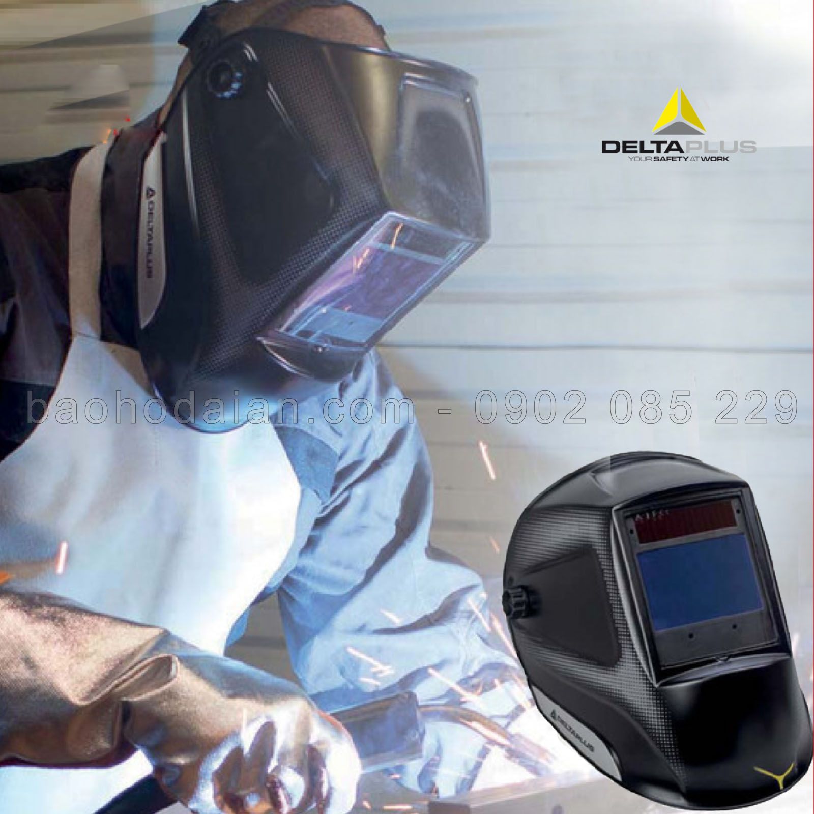 - Mặt nạ hàn tự động Deltaplus Barrier bảo vệ toàn diện cho khuôn mặt và mắt của người sử dụng khỏi các chất độc hại trong không khí.