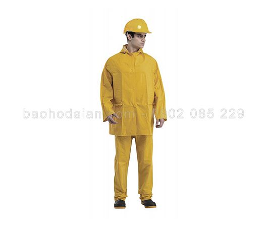 - Quần áo mưa được sản xuất từ PVC kết hợp Polyester chống thấm tối đa.