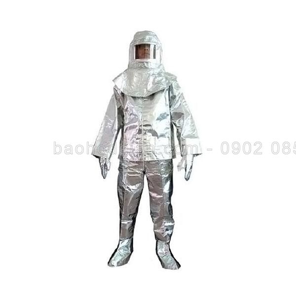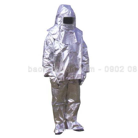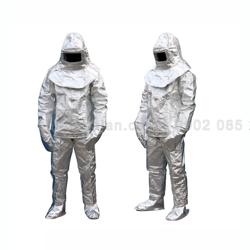 - Quần áo chống cháy chịu nhiệt: Làm bằng sợi thủy tinh tráng nhôm chống cháy không chứa amiang độc hại, chất liệu bóng chịu được nhiệt độ 1000 độ. Gồm 2 lớp: 1 lớp tráng nhôm kỹ thuật theo kỹ thuật mới làm bộ quần áo mềm và nhẹ hơn và 1 lớp lót Aramid màu trắng bên trong. Áo không mũ, không túi, cổ kín, có đai gấu, đóng mở bằng nhám dính, giúp đóng mở nhanh và dễ dàng. Quần không túi, không cạp, có dây đeo thuận tiện trong quá trình thao tác
